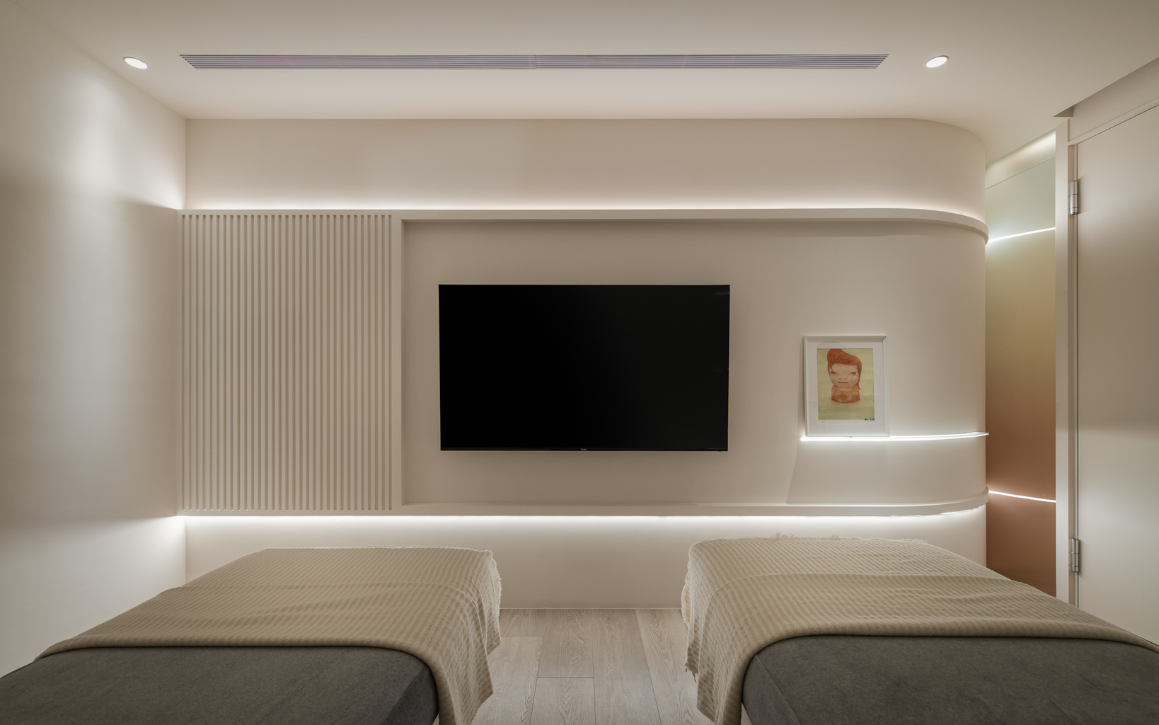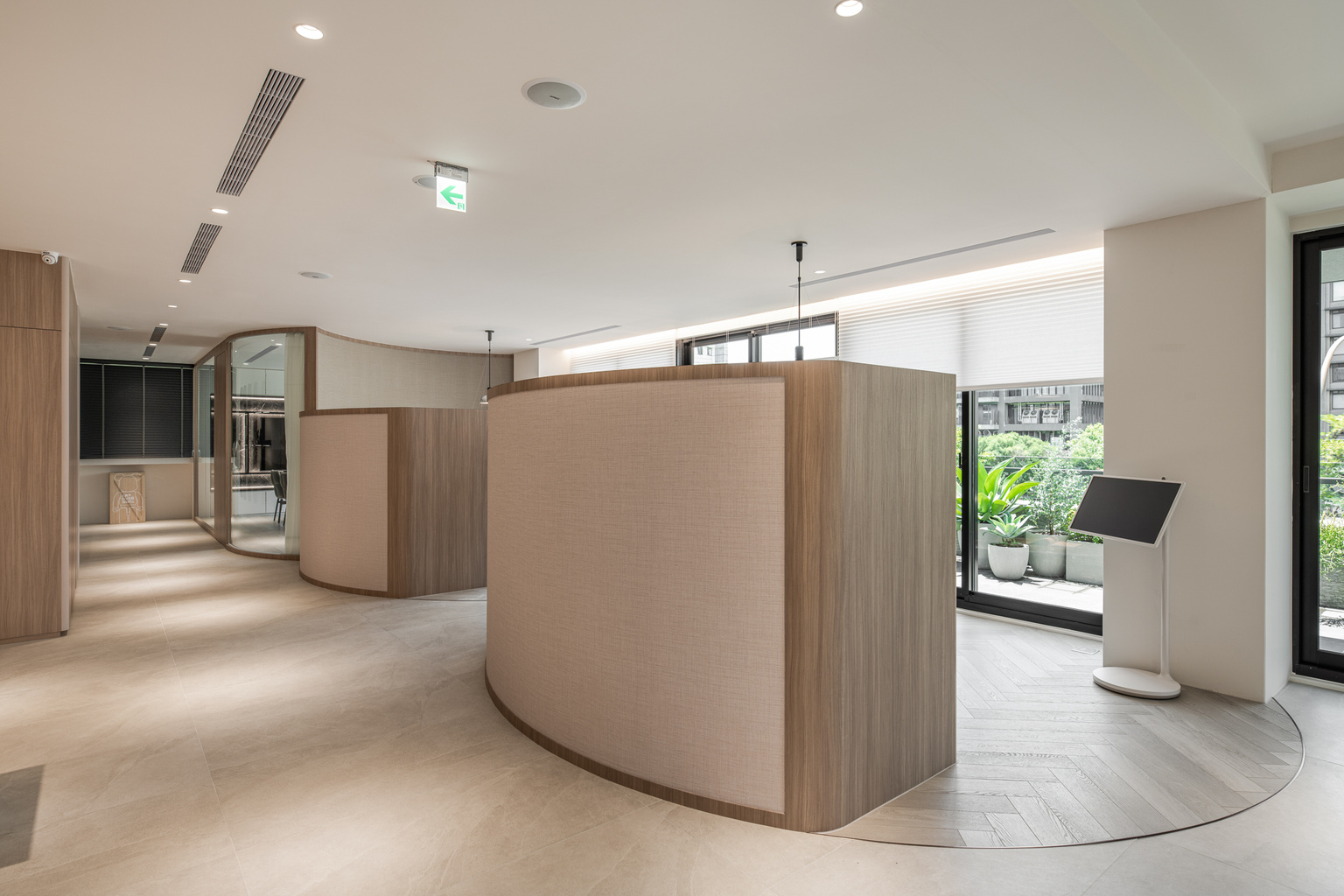 從接待區、諮詢空間到療程區域,行走時的安定感、視覺的延續性,以及與燈光、牆面材質的協調程度,都讓整體空間顯得更加一致而有層次。