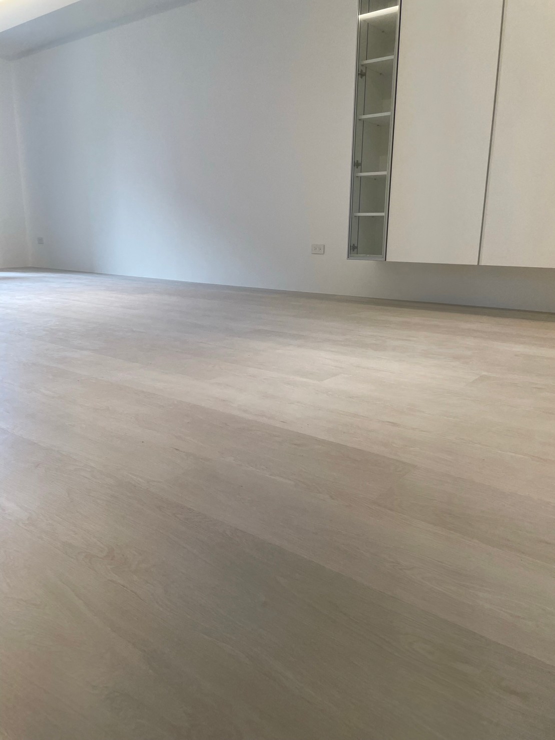這款地板在視覺上不會過於搶眼,卻能自然延伸空間感,特別是在臥室與採光良好的區域,讓光線落在地面時顯得柔和而有層次。